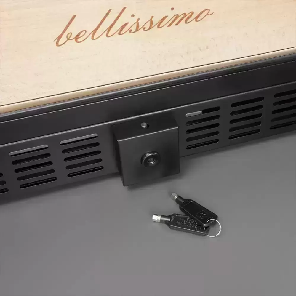 Компрессорный винный шкаф Meyvel MV154PRO-KBT3 Компрессорный винный шкаф Meyvel MV154PRO-KBT3 — идеальное место хранения и демонстрации коллекции вин в ресторанах, барах или винных комнатах. Он вмещает внушительную винотеку до 154 бутылок типа «Бордо», а если размер бутылки нестандартный, то съемные полки решат эту проблему. Три независимые температурные зоны для разных сортов напитков: верхняя поддерживает температуру от +5 до +20°C, средняя — от +5 до +12°C, нижняя — от +12 до +20°C. Подсветка белого, синего или янтарного цвета создает правильную атмосферу для эффектной демонстрации содержимого. Модель MV154PRO-KBT3 может быть как отдельностоящей, так и встроенной в нишу, а перенавешиваемая дверь предоставляет возможность разместить ее в любом удобном месте. Стоит отметить низкий уровень шума — всего 41 дБ, поэтому холодильник для вина не потревожит владельца неприятными громкими звуками. Для вашего спокойствия Meyvel MV154PRO-KBT3 оснащен системой сигнализации, которая оповестит об отклонениях температуры, функцией блокировки панели управления, предотвращающей случайные изменения настроек, и замком. Угольный фильтр очищает воздух внутри шкафа от посторонних запахов. Надежный, функциональный и стильный винный шкаф Meyvel MV154PRO-KBT3 станет достойным украшением ресторана, бара, гостиницы или кухни опытного коллекционера. Преимущества Meyvel MV154PRO-KBT3: вместимость (до 154 бутылок); три температурные зоны; два типа установки; перенавешиваемая дверь; угольный фильтр; подсветка; тихая работа (41 дБ); стильный дизайн.